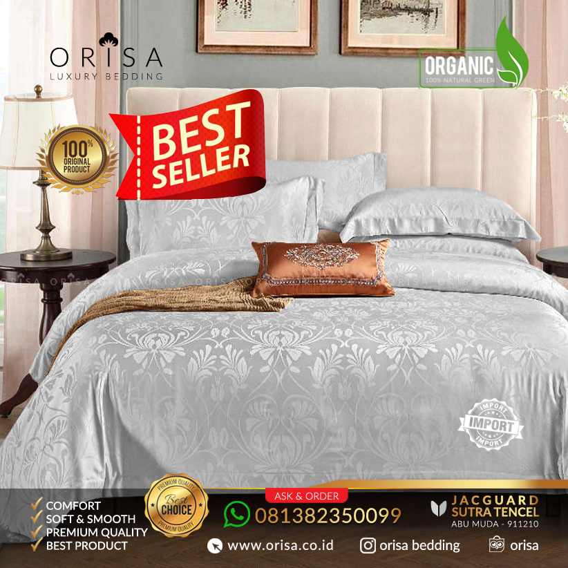 Sprei sutra tencel organic jacguard import, Sangat lembut, super nyaman, super adem, dingin ketika di pakai, sangat nyaman untuk digunakan, Mewah dan Elegan. Dibuat dari bahan pilihan berkualitas, Buat tidur Anda dan keluarga jadi lebih berkualitas, nyaman dengan Sprei ORISA!