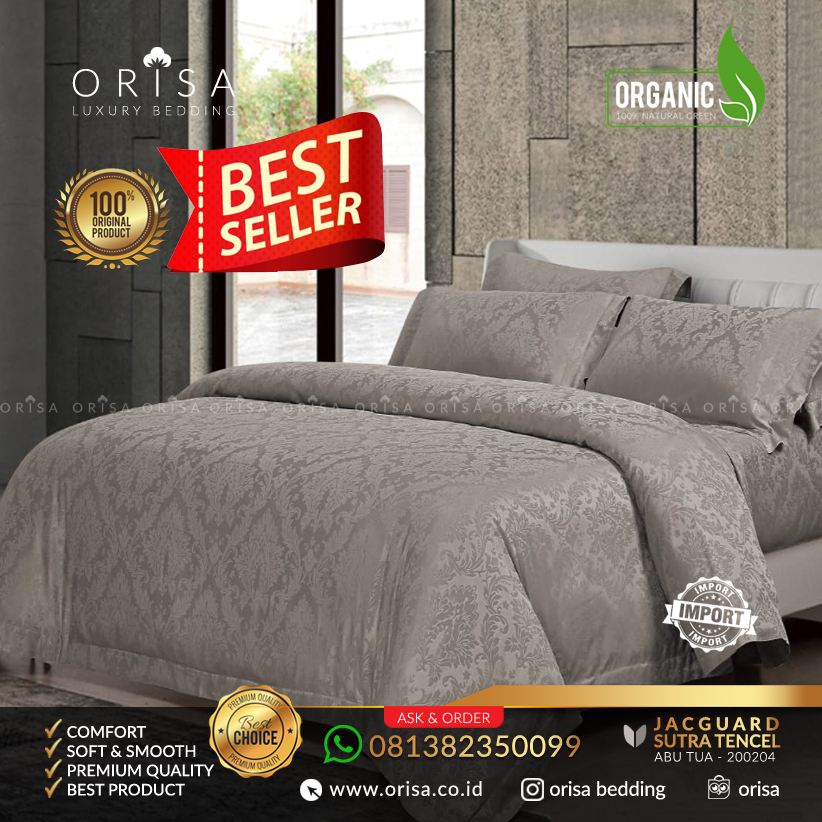 Sprei sutra organic jacguard import, Sangat lembut, super nyaman, super adem, dingin ketika di pakai, sangat nyaman untuk digunakan, Mewah dan Elegan. Dibuat dari bahan pilihan berkualitas, Buat tidur Anda dan keluarga jadi lebih berkualitas, nyaman dengan Sprei ORISA!