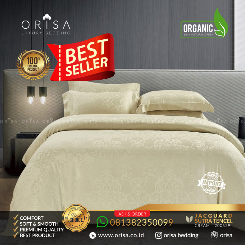 Sprei sutra tencel organic jacguard import, Sangat lembut, super nyaman, super adem, dingin ketika di pakai, sangat nyaman untuk digunakan, Mewah dan Elegan. Dibuat dari bahan pilihan berkualitas, Buat tidur Anda dan keluarga jadi lebih berkualitas, nyaman dengan Sprei ORISA!